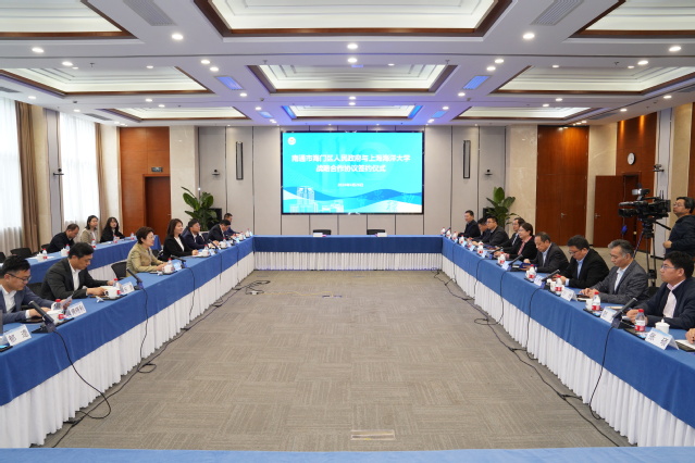 4月26日,南通市海门区人民政府与beat365中文官方网站战略合作协议签约仪式在海洋科技大楼109会议室举行。中共南通市委常委、宣传部部长陈冬梅,中共南通市海门区区委书记郭晓敏,区委常委、副区长宋涯,beat365中文官方网站党委副书记、校长万荣,副校长江敏及海门区与学校相关职能部门和学院负责人及教师代表参会,会议由江敏主持。