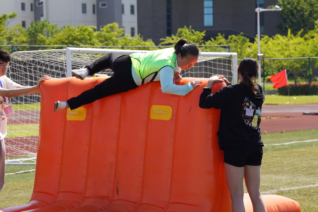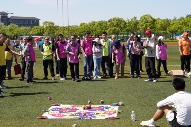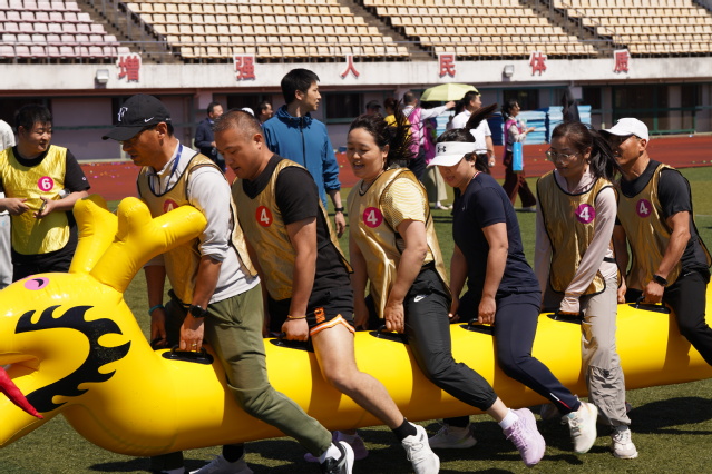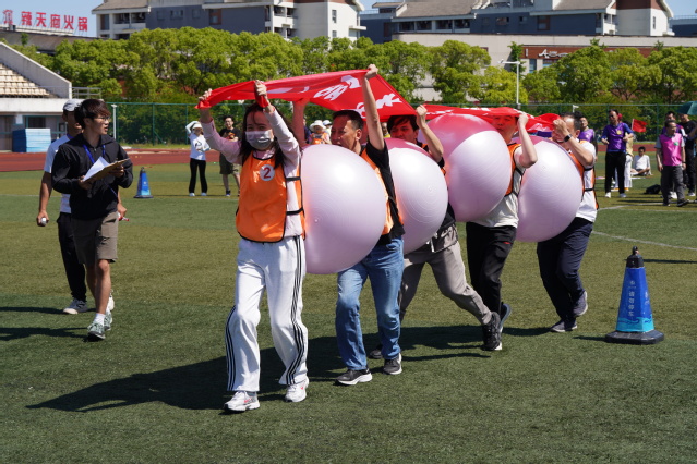 在大学生啦啦操和武术社团表演暖场后,教职工趣味运动会拉开了帷幕。本届趣味运动会的项目做了全面的更新,旱地龙舟、胸背夹球、趣味障碍、沙包投掷四个项目各有特色,新颖的项目让老师们大呼过瘾,忘却疲劳,沉浸在轻松和愉悦的健身活动中。部分项目设置年龄组别等要求,让不同年龄群的教职工加入到健身运动的队伍中来,目的是将一直潜心在教学和研究中的老师们相约到室外动起来、跳起来,舒展筋骨,放松精神。所有的项目都为团体项目,展现的就是运动员之间的配合和默契,让更多的老师在活动中提高团队协作的意识,增进交流,同时也起到了强身健体的作用。