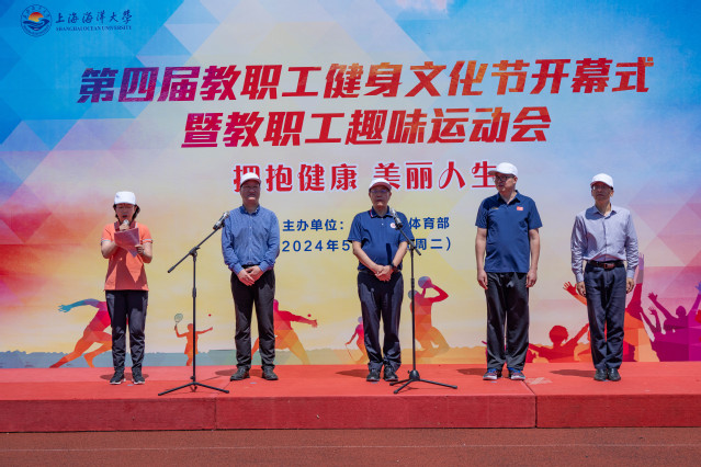 万荣宣布第四届教职工健身文化节暨趣味运动会开幕。吴建农致开幕辞,他代表学校党政领导班子向健身文化节开幕表示热烈的祝贺,向为筹备本次文化节辛勤付出的主办单位、承办单位、二级分工会和教职工文体协会表示忠心的感谢。他回顾了教职工健身文化节的发展历程和历届活动主题,肯定了“健身·文化节”作为一项创新型的特色品牌活动,融文化和体育于一体,紧密围绕学校的工作特点,在思想引领和凝神聚力方面发挥了它的特殊作用。
