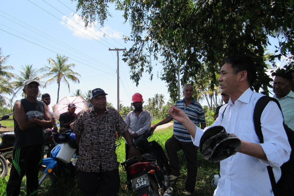 在圭亚那Wakenaam岛3区水稻种植现场与种植户交流无人机项目
