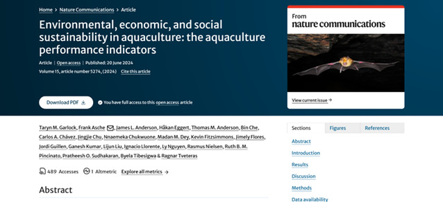 6月20日,《自然-通讯》杂志(英文刊名NatureCommunications)发表了题为“Environmental,economic and social sustainability in aquaculture: the aquaculture performanceindicators”的研究成果。该研究为beat365中文官方网站经济管理学院副教授车斌参与的国际渔业经济合作历经5年的阶段性研究成果。NatureCommunications杂志为Nature旗下的子刊杂志,影响因子多年在16以上,是一本综合性专业期刊杂志。