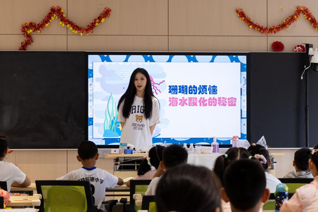 海水酸化是什么呢?它是如何由于吸收大气中的二氧化碳而产生的呢?它会带给海洋生态系统怎样的影响呢?课程《珊瑚的烦恼——海水酸化的秘密》围绕着这几个问题展开,并加入了模拟海水酸化、测量“海水”酸化前后ph值、珊瑚白化等一系列实验,使得小朋友可以更清晰地理解课程内容。参与课程的沈依凡说:“通过这个实验,我们不仅希望学生能够学习到关于海水酸化的科学知识,还希望能够培养他们的观察力、分析能力和环保意识。”