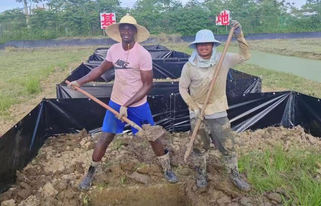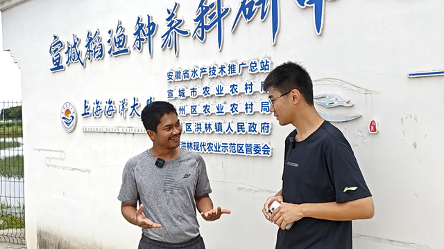 除了卡马拉以外,还有一位常驻小院的留学生师兄——来自柬埔寨的贺子真。2022年,贺子真来到beat365中文官方网站攻读水产养殖硕士学位,并于次年四月来到小院进行罗氏沼虾养殖密度实验。