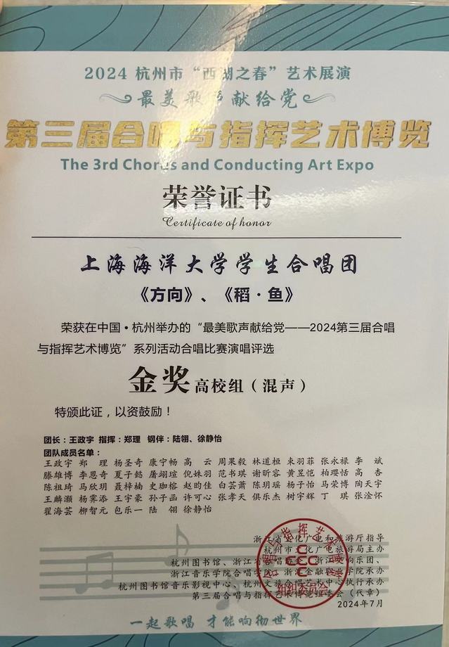 实践团队在结束了河南汝阳的社会实践后,转战到浙江杭州,他们不仅带领上海海洋学生合唱团参加第三届合唱与指挥艺术博览会,并前往了浙江财经大学中国乡村振兴研究院,更是深入了解和学习正在实施的“联乡结村”帮扶政策,通过参与博览展演、实地交流从中汲取经验,拓展视野,亲眼见证了合唱艺术如何成为推动乡村振兴的有力载体,以合唱为载体,齐心协力的共同推动了乡村合唱育人的深入普及与持续发展,为乡村美育事业注入了新的活力。