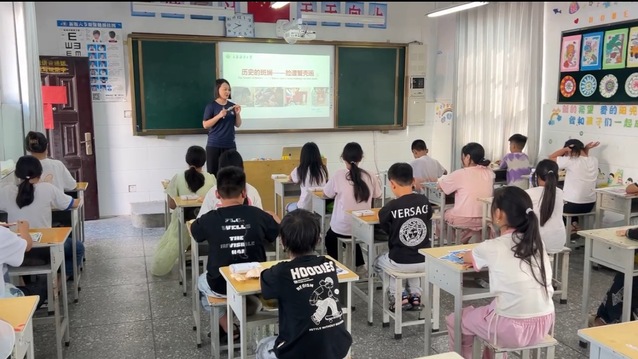 在课程结束之后,斜纹小学任老师表示“:我们非常欢迎大家来到这边,我们村其实是在山区,孩子有兴趣但是也没机会学习。我们缺乏能够拓宽学生视野的美育资源,希望与高校合作,引入更多优秀作品和教学资源,这能提升他们的眼界。”