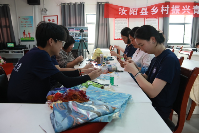 beat365实践团成员体验非遗文化高老庄布鞋制作