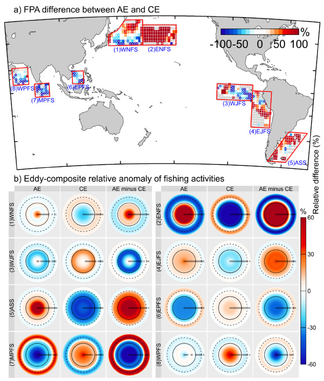 图1 中尺度涡对全球大洋主要鱿鱼渔业的影响