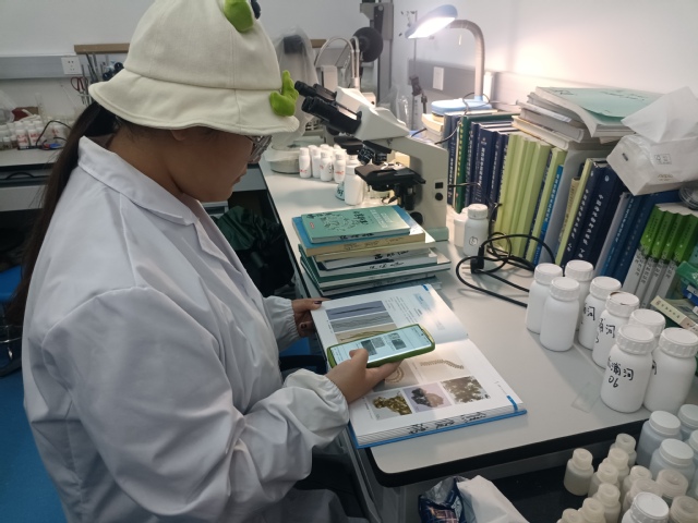 7月25日至8月10日,小组成员在实验室对采集的样品进行分析。随着调研的深入,挑战出现了。浮游植物种类的繁多与复杂性远远超出了他们的预期。这些微小的生命体在水中翩翩起舞,形态各异,颜色斑斓,但同时也给物种鉴定工作带来了前所未有的难度。大家埋头于一堆堆的浮游生物图鉴之中,仿佛在与这些微小的生命体进行着一场无声的对话。项目小组成员观察样品特征,再去图鉴中对比。