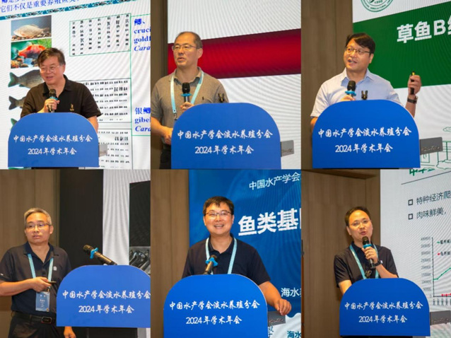 会议特邀中国科学院桂建芳院士、中国水产科学研究院刘英杰研究员、华中农业大学张永安教授、中国科学院水生生物研究所胡炜研究员、厦门大学徐鹏教授、浙江万里学院葛楚天教授6位专家学者,围绕“科技创新赋能,发展新质生产力”作了特邀报告。淡水养殖分会副主任委员朱新平和高泽霞先后主持特邀报告。会议还设置了鱼类种质创新和绿色养殖、名特优水产动物种质创新和绿色养殖、高效繁育和生态渔业技术模式3个分会场作专题交流,安排50余位领域内专家、青年学者及研究生作口头报告,就水产养殖领域的热点难点问题进行了深入交流与探讨。