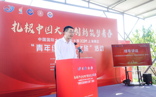 中共上海市教育卫生工作委员会副书记、上海市教育委员会副主任顾红亮在活动上发表讲话。他首先对青年学子的创新精神与社会责任感给予高度评价,称赞他们是国家的未来与希望。他强调,“红旅”活动作为一堂融创新创业、乡村振兴、红色筑梦为一体的“中国金课”,已经在全国范围内产生了广泛而深远的影响。活动不仅激发了青年学生的爱国热情和创新精神,还促进了产学研深度融合和区域经济社会协调发展。同时,该活动也为青年学生提供了一个展示自我、锻炼能力的平台,有助于他们成长为社会主义合格建设者和可靠接班人。