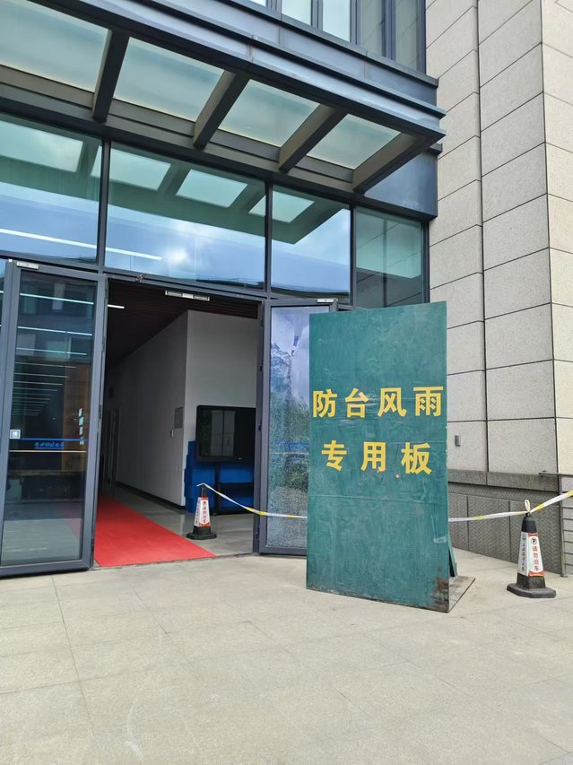 科技大楼,文科楼防台防汛专用板已提前放置到位。