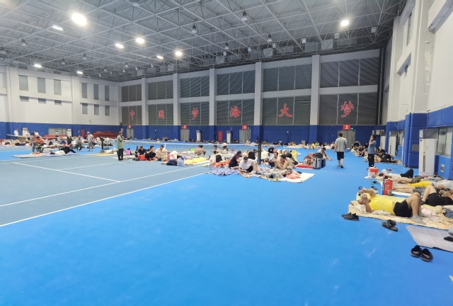 后勤处安置点开了空调,备好饮用水和就餐等物资,并对安置人员开放了自动售货系统。
