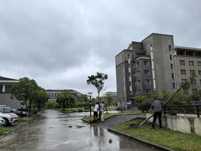 9月16日,“贝碧嘉”台风登陆临港新城。学校坚持“实行全面规划、统筹兼顾、预防为主、及时抢险、局部利益服从全局利益”的原则,把确保全校师生生命、财产安全作为防汛防台工作的重中之重。