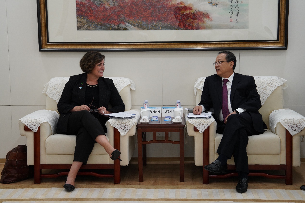 万荣对贝丝•贝克多的到来表示热烈欢迎,并简要介绍了学校的基本情况和学科优势,深情回顾了学校与FAO的合作交流历程,重点介绍了水产生态养殖中心(CEA)近年来的工作进展和提出了未来合作思考。贝丝•贝克多对学校的接待表示衷心感谢,对学校在“双一流”学科领域所取得的成就给予了高度赞誉,并表示愿意进一步加强与学校在水产技术推广、人才培养和南南合作等方面的深度合作,共同为全球水产乃至农业发展贡献力量。