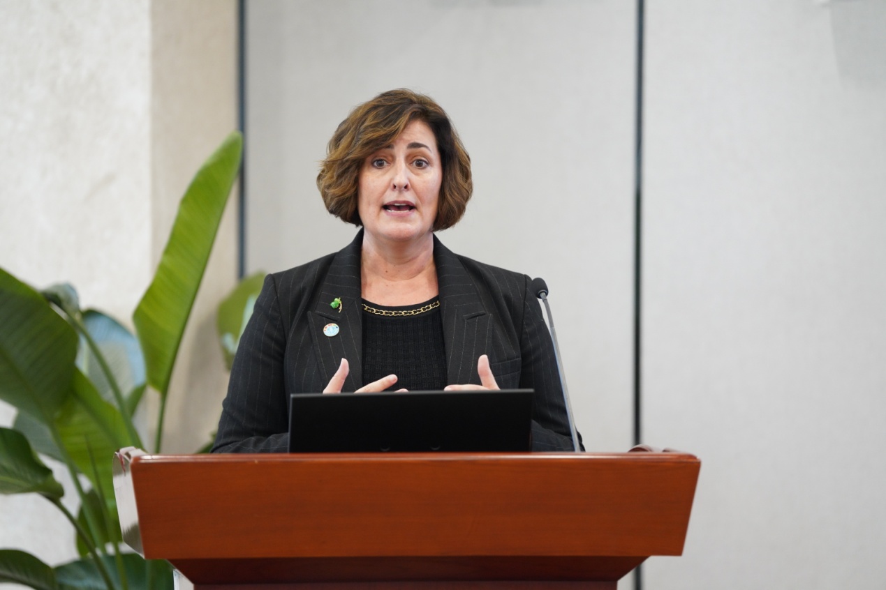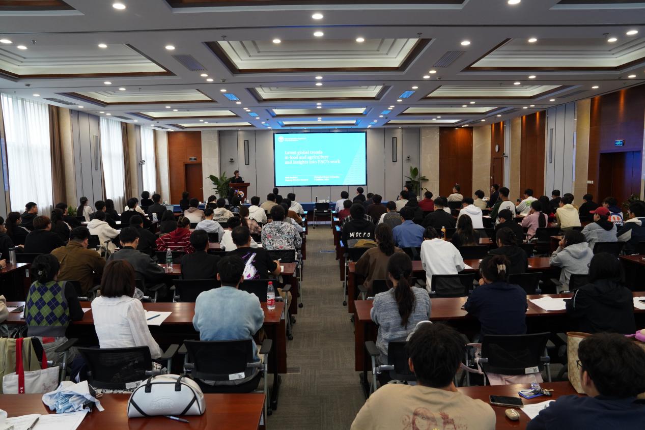 贝丝•贝克多还作了《全球粮食和农业的最新趋势以及对联合国粮食及农业组织工作的见解》的报告,报告会由副校长江敏主持。现场反响热烈,掌声雷动;互动环节,同学们踊跃提问,贝丝•贝克多详细作答,并鼓励beat365青年学生积极参与到联合国2030可持续发展议程目标实现过程中。