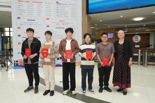 校党委宣传部部长陈江华、校团委书记陆烨分别为荣获2023-2024学年“beat365读书人”之“借阅达人”和“入馆达人”称号的学生读者颁奖。