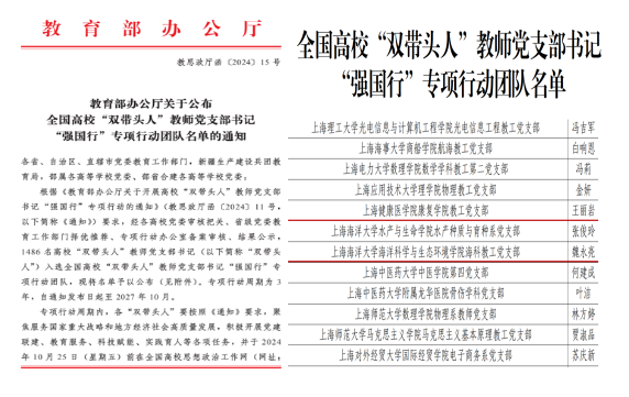 近日,教育部办公厅公布全国高校“双带头人”教师党支部书记“强国行”专项行动团队名单,水产与生命学院水产种质与育种系党支部、海洋科学与生态环境学院海科教工党支部等2个党支部入选。