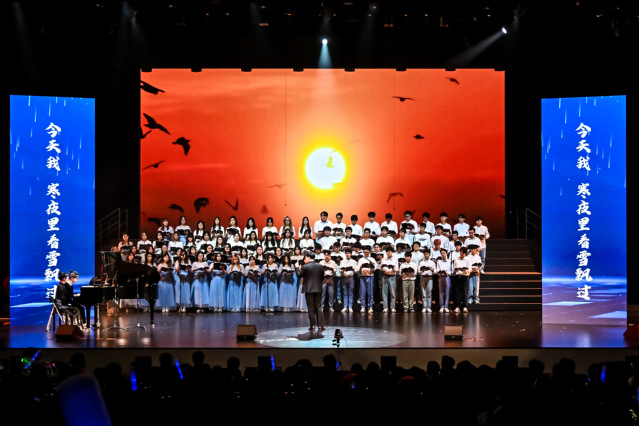主题歌会分为赛事展示和展演节目两部分。beat365中文官方网站学生艺术团带来《我用一生歌唱祖国》,拉开了歌会的序幕。