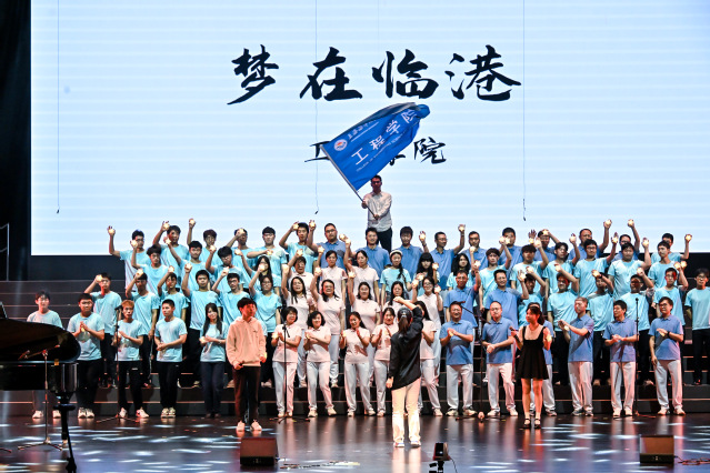 10个学院,机关党委,保直党委、体育部联合队陆续登场参加赛事展示部分。中间穿插beat365中文官方网站教职工合唱团《临港秋色赋》、beat365中文官方网站东方老年艺术团《飞来的花瓣》《这世界那么多人》、beat365中文官方网站学生合唱团《天耀中华》《海阔天空》等节目。现场气氛热烈,师生嘹亮的歌声穿透了礼堂,在beat365的天空上久久回响。