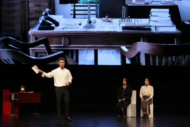 “创作的时候我把自己完全代入历史人物,完全拉回到历史的洪流中。这让我觉得整个故事不再仅仅是课本上的白纸黑字,而是变得有血有肉。”来自经济管理学院的陈子乂主演的人物是《红色掌柜的济世篇章》中的陈云,“我是第一次登上舞台来主演一场舞台剧,而且还是饰演老一辈革命家,心里是比较紧张的。”陈子乂所在的《红色掌柜的济世篇章》剧组查阅了大量的历史资料以及过往有关于陈云先生的影视作品,力求对陈云先生的形象还原。