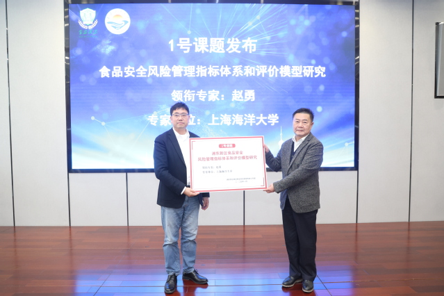 会上,食品学院谢晶院长回顾了双方上一轮合作工作的重点内容,强调了合作过程中取得的实质性成效,这些成果为双方的长远发展奠定了坚实的基础。浦东市场监督管理局金湘处长明确了新一轮合作的方向和目标,详细阐述了合作的具体内容,涵盖了科研创新、科普宣传、食安培训等多个关键领域。最后,张力局长为食品安全专家顾问团成员赵勇教授颁发了聘书,并公布工作室第一号课题——《浦东新区食品安全风险管理指标体系和评价模型研究》及课题组领衔专家。双方将在食品安全科研创新、人才培养、科普宣传等方面实现互利共赢,为区域食品安全保障注入强大动力。