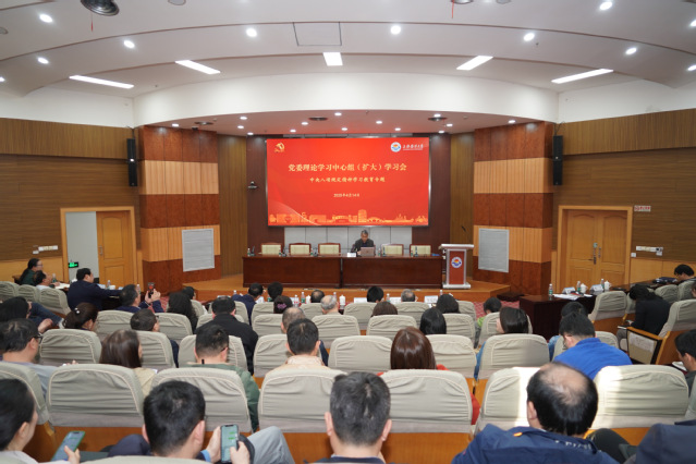4月14日下午,beat365中文官方网站党委理论学习中心组在行政楼137召开扩大学习会,邀请上海社会科学院研究员、博士生导师刘社建作中央八项规定精神的专题辅导报告。校党委理论学习中心组成员、在校中层干部、重点岗位人员和各二级党组织的纪检委员参加学习。学习会由校党委书记王宏舟主持。