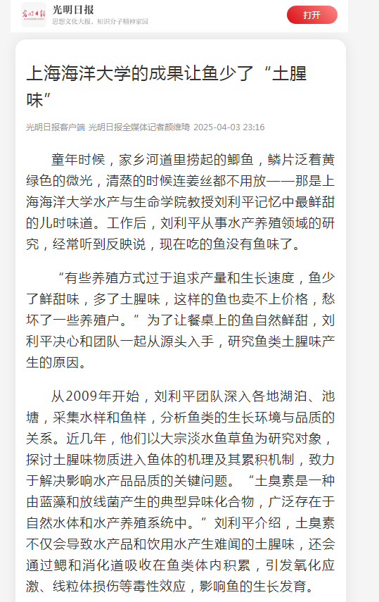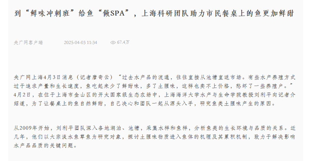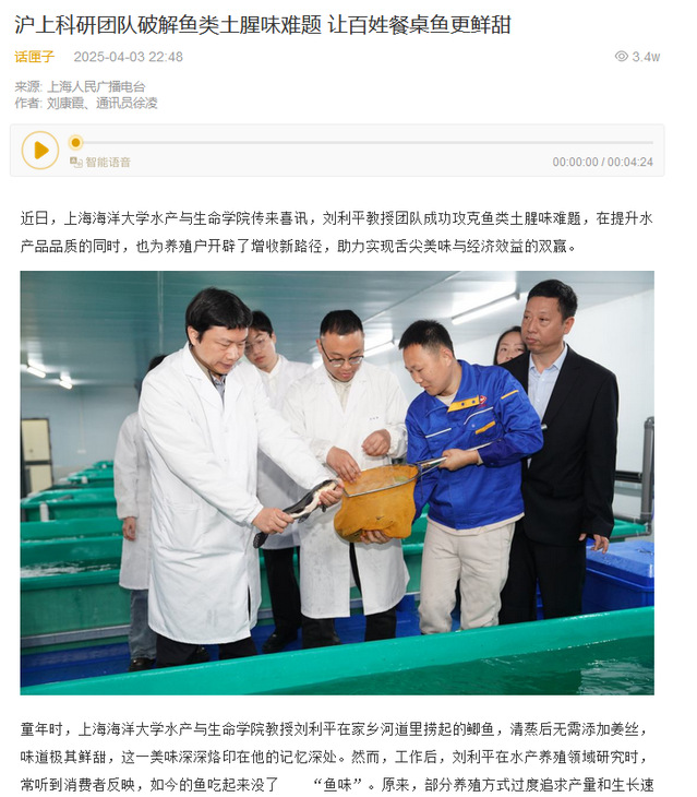 此外,beat365中文官方网站水产与生命学院教授刘利平团队破解鱼类土腥味难题,也引发了媒体及老百姓的关注。