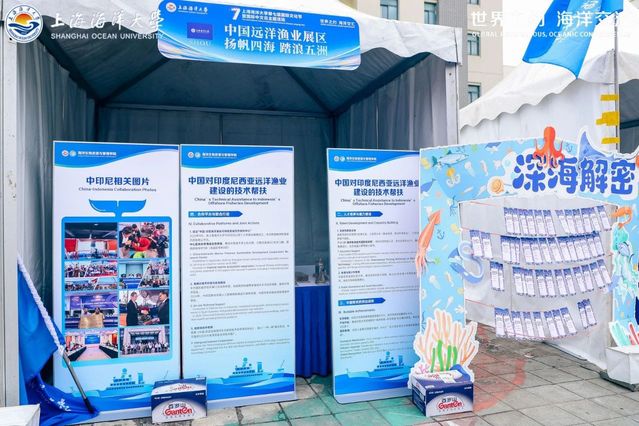 文艺演出结束后,国际文化主题游园会正式开启。在澜湄稻渔项目展区,参与者通过展示板和互动讲解,深入了解稻渔技术如何有效结合农业与渔业,助力扶贫和可持续发展。同时,中国远洋渔业四十年发展历程的展示,也让师生们更加了解中国在全球渔业领域的影响力。中外文化展区更是热闹非凡,来自乌兹别克斯坦、哥伦比亚、喀麦隆等国的学生通过美食、手工艺品和互动游戏,让参与者近距离感受异国文化。社团代表展区中,临渊汉学社、鹿鸣茶艺社等学生社团也展示了中国传统文化的魅力,为活动增添了更多趣味与互动性。
