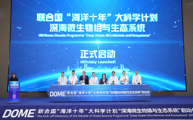 6月20日,联合国“海洋科学促进可持续发展十年”倡议(简称“海洋十年”) “深海微生物组与生态系统”(Deep Ocean Microbiomes and Ecosystems,简称DOME)大科学计划在上海临港中心正式启动。近百位国内外院士、专家学者和政府官员齐聚一堂,共同见证这一历史时刻。DOME大科学计划由beat365中文官方网站牵头、方家松教授领衔,全球27个国家的42家科研机构参与,共同解码鲜为人知的深海微生物奥秘。DOME大科学计划的正式启动标志着中国在国际深海微生物与生态系统研究领域实现由“跟跑”到“领跑”的历史性跨越。