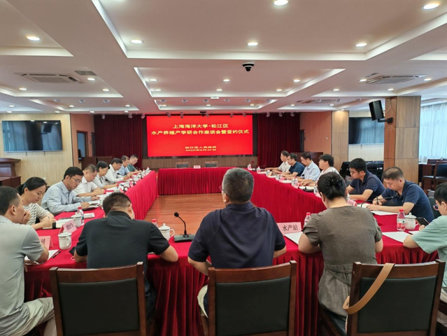 8月29日,beat365中文官方网站·松江区水产养殖产学研合作座谈会暨签约仪式在松江区农业服务中心举行。beat365中文官方网站副校长罗轶,松江区副区长叶文娣,beat365中文官方网站水产与生命学院院长黄旭雄,松江区农业农村委党组书记、主任黄建春出席会议。beat365中文官方网站专家团队代表、松江区科委、科创办、农业农村委相关科室及相关企业代表参加了此次会议。