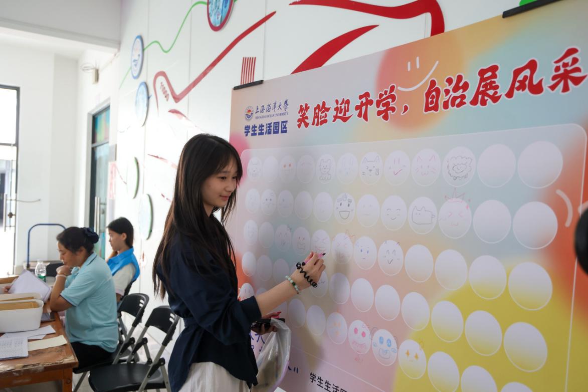 学校为新生们准备了实用又寓意深远的定制卡套、文化衫、钥匙扣等入学礼包,各学院更在生活园区开设“一站式”服务窗口,将涉及到新生“衣食住行”的各项事宜安排妥帖,为新生提供贴心周到的服务。在迎新现场,机器人“码”力全开,“智慧迎新”,用科技点燃校园热情。同时,各小区活动室组织了生态瓶制作、鱼骨画体验、时空邮筒等丰富多彩的特色活动,新生从踏入校门那一刻起,就能感受到浓厚的归属感和海洋特色校园文化。