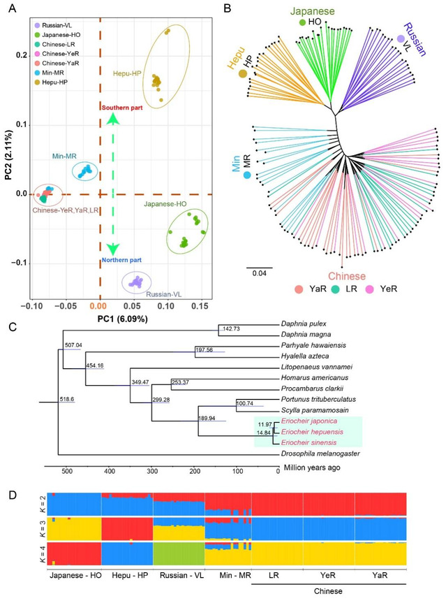 不同绒螯蟹种群结构和进化历史的基因组分析