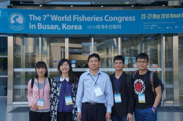 The 7th World Fisheries Congress was held in Busan, Korea from May 23 to 27, 2016. Researchers and experts from around the world, including Korea, the United States, Canada, the United Kingdom, Japan, Brazil, India, and China, gathered together and exchanged ideas on sustainable development of the fishery industry and security of marine products. Upon invitation of its organizing committee, Professors Song Liming and Lin Dongming from College of Marine Science, PhD candidates Tang Hao and Xu Luoliang, and master candidates Zhang Miao and Song Qi attended the congress.