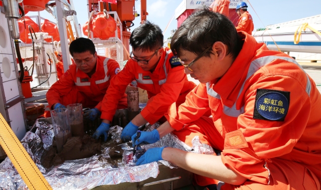 Researchers Extracting Sediment Samples Collected from Mariana Trench Seabed by No. 2 Lander