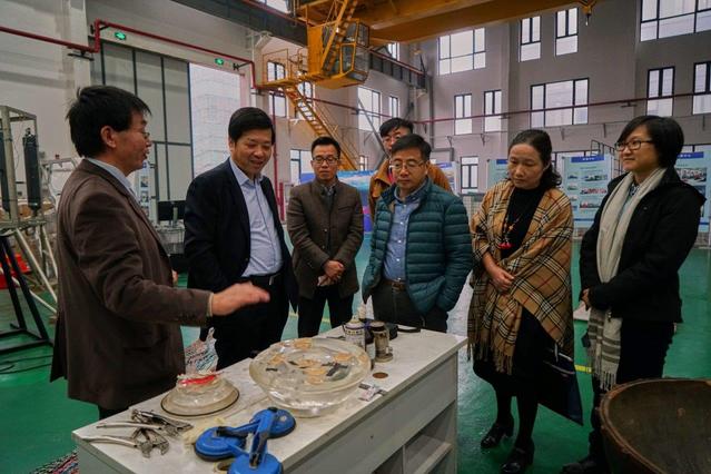 Later on, accompanied by Wu Jiamin, SunShengzhi conducted a site survey on the construction of the scientific researchplatforms such as the Marine Fishery Remote Sensing Laboratory, theSino-Portuguese Joint Laboratory for Marine Bioscience and the Abyss Scienceand Technology Research Center.