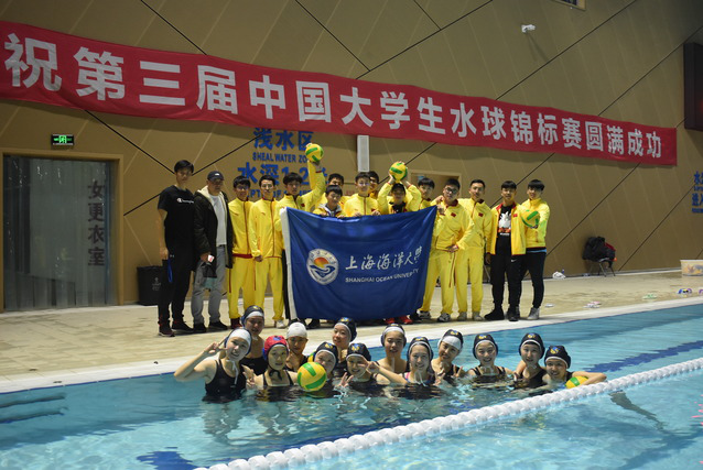 After two semesters of meticulous preparations, SHOU sent two water polo teams (one male team and one female team), led by Shi Lin and coached by Zhang Fan, Qu Baowei, and Song Yutong from the Department of Physical Education and Sport. After three days of intense competition, our male water polo team ranked in the second place; our female water polo team was transferred to Group B (professional group), because of the insufficiency of participating teams in Group A (non-professional group), and ultimately ranked in the fourth place in the professional group. In addition, Zhao Jingying from the College of Fisheries and Life Science and Shu Zhitao from the College of Food Science and Technology were given PE Morality Award, and Huang Likun from the College of Information Technology was elected as the “Best Goalkeeper”.