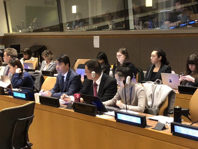 On November 12-19, the intergovernmental consultation of the 74th General Assembly of the United Nations, regarding “The resolution on realizing sustainable fisheries according to The Agreement for the Implementation of the Provisions of the United Nations Convention on the Law of the Sea of December 10, 1982 Relating to the Conservation and Management of Straddling Fish Stocks and Highly Migratory Fish Stocks and other documents”, was held at the United Nations Headquarters in New York. As entrusted by the Fisheries Bureau of the Ministry of Agriculture and Rural Affairs, professor Tang Yi and associate professor Lv Ming from the College of Marine Culture and Law of SHOU joined the Chinese government delegation, and attended the intergovernmental consultation under the leadership of the Permanent Mission of the People's Republic of China to the United Nations.