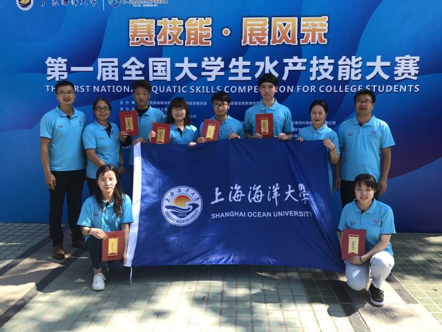 In order to thoroughly implement the Opinions on Strengthening the Integration of Agriculture, Science, and Education and Carrying Out Plan 2.0 for Education and Training of Outstanding Agricultural and Forestry Talents jointly issued by the Ministry of Education, the Ministry of Agriculture and Rural Affairs, and National Forestry and Grassland Administration and enhance the training of professional practical skills for college students, the 1st National Aquatic Skills Competition for College Students was held at Guangdong Ocean University (Huguang Campus) on November 22-24. The competition was sponsored by the Joint Committee of the Ministry of Education's Steering Committee on the Teaching of Aquaculture Majors in Higher Educational Institutions and the National Demonstration Center for Experimental Fisheries Science Education, undertaken by Guangdong Ocean University, and co-organized by Guangdong Evergreen Feed Industry Co., Ltd. and other entities. Nearly 300 students from 54 higher educational institutions across the country competed with each other in the event, fully exhibiting the practical operational skills and professional comprehensive quality of students majoring in fisheries science in Chinese higher educational institutions. SHOU sent six students, who participated in all the six items in Guangdong Province under the leadership of five teachers, i.e., Chen Lijing, Gong Xiaoling, Zhang Ruilei, Xu Dan, and Xu Can. They eventually won two grand prizes, three first prizes, and one second prize, and SHOU won the Excellent Organization Award.