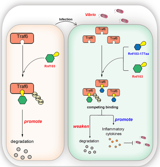 In this paper, the research group has discovered a protein called E3 ubiquitin ligase Rnf103 (Rnf103) which plays a key role in the immune escape of Vibrio anguillarum in fish, and a circRNA molecule called circRnf103 that can effectively inhibit the immune escape of Vibrio anguillarum. Relying on these findings, the team has developed a circRnf103 nucleic acid molecule using the circRNA vaccine technology. The circRNA therapy based on the circRnf103 nucleic acid molecule can effectively treat Vibrio anguillarum infection and alleviate damage to various organs. This study elucidates the molecular mechanism by which circRNA enhances the natural immunity of fish, and demonstrates that the circRNA immunotherapy presents broad application prospects in the prevention and control of fish diseases.