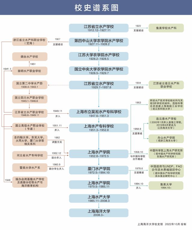 1927年,学校更名为第四中山大学农学院水产学校,1928年更名为国立中央大学农学院水产学校,1929年恢复江苏省立水产学校校名。1937年因八一三事变,校舍毁于战火,辗转合川维续水产教育。1939年先于国立第二中学成立水产部,后于1943年成立国立四川水产职业学校。1947年在上海复校,定名为上海市立吴淞水产专科学校,1951年更名为上海水产专科学校,1952年组建升格为上海水产学院,成为中国第一所独立建制的本科水产高等学府。1972年受十年浩劫影响搬迁到厦门集美办学,更名为厦门水产学院,1979年迁回上海原址恢复上海水产学院,同时保留厦门水产学院。1985年更名为上海水产大学。2008年为适应国家海洋事业发展需要,更名为beat365中文官方网站。